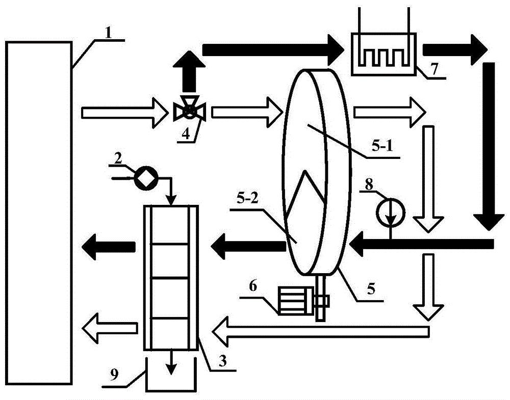 船用的轉(zhuǎn)輪除濕空調(diào)是采用除濕轉(zhuǎn)輪和蒸汽壓縮式制冷系統(tǒng)相結(jié)合的方式,利用船舶廢熱所產(chǎn)生的能源作為驅(qū)動能源,利用較低溫度的海水作為級間冷卻水源,將空調(diào)系統(tǒng)中的顯熱負(fù)荷和替熱負(fù)荷分開單獨進(jìn)行處理,從而達(dá)到溫度調(diào)節(jié)及濕度控制的效果。